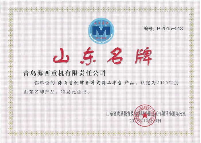 繼青島名牌之后,海西重機再入名牌榜單,自主研發(fā)制造的自升式海工平臺喜獲2015年度“山東名牌產(chǎn)品”榮譽稱號!