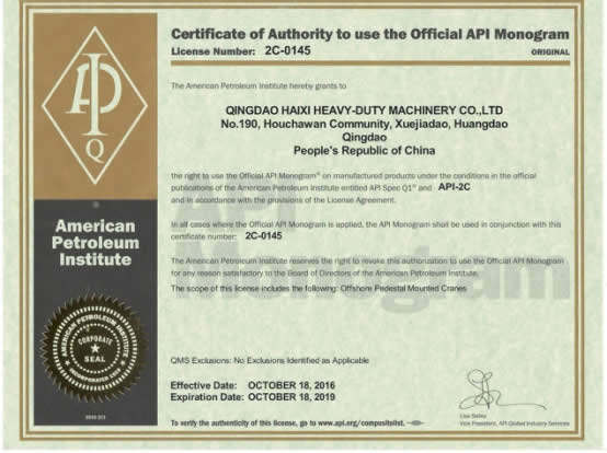 千錘百煉出精品。作為專業(yè)的海工平臺集成建造商,此次我司海上基座式起重機API-2C產(chǎn)品許可證書的成功取得,不僅是對公司質(zhì)量管理體系的高度肯定,也是公司管理水平穩(wěn)步提升的有效證明,為海西重機積極響應(yīng)國家“一帶一路”建設(shè),加快實施“走出去”戰(zhàn)略,增強市場競爭力提供了有利條件。