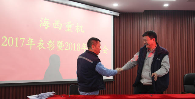 1月6日,海西重機2017年表彰暨2018年工作會在901會議室順利召開,公司主管及以上人員、2017年度優(yōu)秀員工參加會議,公司黨委書記、董事長鄧振山主持會議。