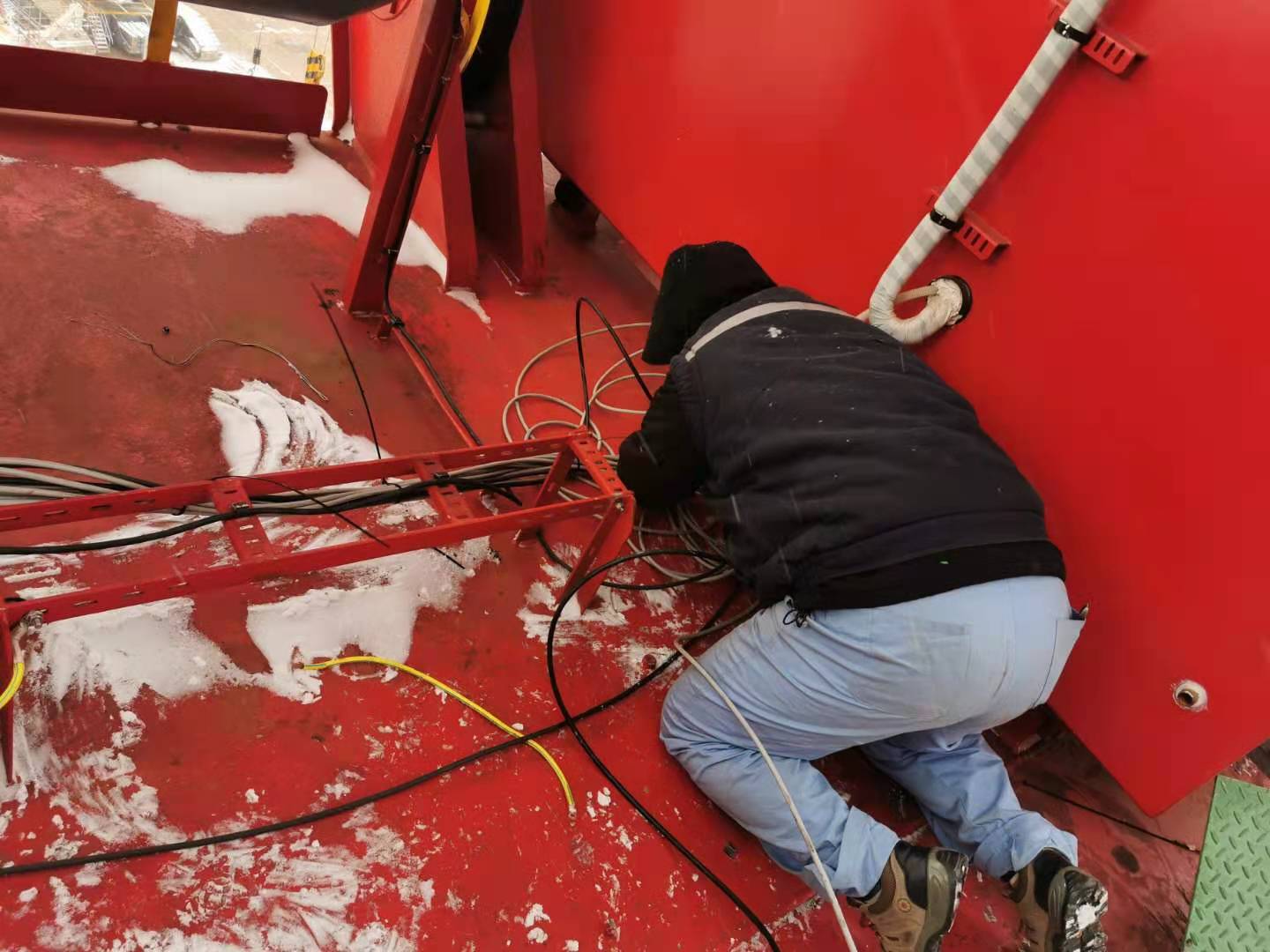 自2020年12月31日開始,為了追趕進(jìn)度,我們團(tuán)隊(duì)頂著冷風(fēng),放棄休息時(shí)間,把臂架到機(jī)房、司機(jī)室、電氣房的電纜敷設(shè)下來(lái),進(jìn)行捆扎。為了與船廠穿鋼絲錯(cuò)開,吃飯的時(shí)間點(diǎn)總是往后推遲。甚至為了節(jié)省時(shí)間,自己提前帶好面包,中午簡(jiǎn)單吃點(diǎn),為的就是把工作搶一搶,看著已經(jīng)穿到位的電纜,不禁感嘆隊(duì)友們的拼勁兒。