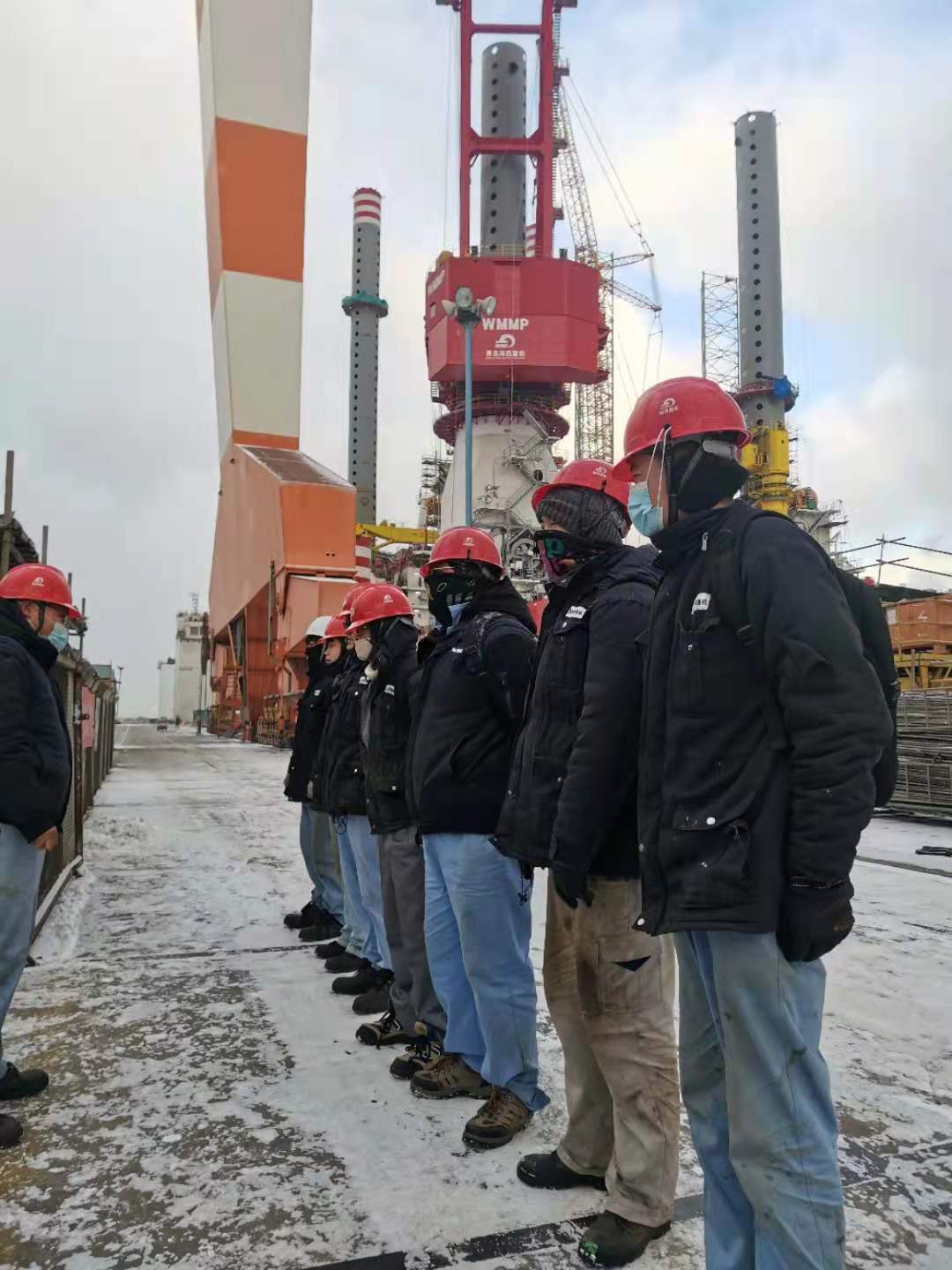 1月7日,山東經(jīng)歷了一次罕見的寒潮,煙臺(tái)下起了雪,這是第二場(chǎng)雪,也是我們要克服的又一個(gè)惡劣天氣,寒風(fēng)里摻雜著雪,氣溫也是零下好幾度。一如既往的早班會(huì),特意強(qiáng)調(diào)一下安全,然后根據(jù)現(xiàn)場(chǎng)情況,交代好工作,我們就整裝上陣,開始一天工作?,F(xiàn)場(chǎng)的問(wèn)題在一個(gè)一個(gè)解決,堅(jiān)定了我們的信心。我常常鼓勵(lì)大家,“咱們?cè)傩量嘈量啵缛战Y(jié)束?!标?duì)友們也會(huì)簡(jiǎn)單回一句暖心的話,“這都不是事,我們都想早點(diǎn)干完?!?/span>