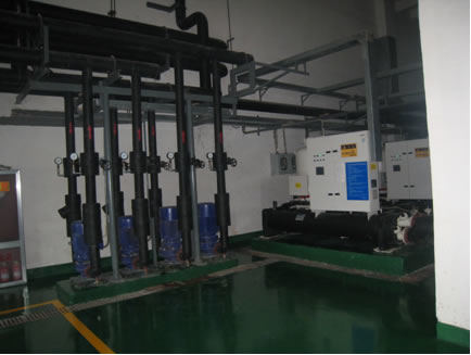 其工作原理是公司利用緊鄰黃海的地理優(yōu)勢(shì),利用夏季時(shí)(-5米以下處)海水溫度在22℃左右(明顯低于戶外溫度),通過(guò)熱泵系統(tǒng)提取其中的能量差(5℃~6℃)用于辦公制冷;而冬季海水溫度5℃左右(明顯高于戶外溫),仍然通過(guò)熱泵系統(tǒng)提取其中的能量差(2℃~3℃),實(shí)現(xiàn)供暖或供熱水的功能。同時(shí),利用公司空壓機(jī)站的循環(huán)冷卻水(夏季冷卻水溫約40℃,冬季冷卻水溫約22℃),通過(guò)熱泵系統(tǒng)實(shí)現(xiàn)常年提供洗浴熱水(45℃左右)的能力。