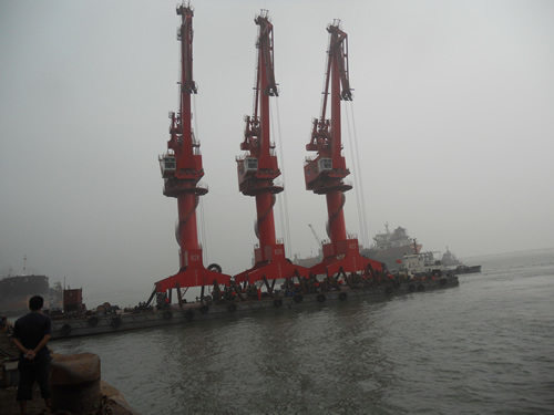 G115于2012年2月3日正式開工,在公司各個(gè)部門的努力奮斗下,于8月17日承載著海西的希望揚(yáng)帆起航發(fā)往連云港,于8月19日靠泊連云港集團(tuán)東泰公司。在現(xiàn)場工作人員的共同努力下,于8月25日三臺機(jī)全部落軌東泰公司碼頭,并于9月7日交予業(yè)主使用?,F(xiàn)場的安裝調(diào)試進(jìn)展迅速,領(lǐng)先于振華公司同期落軌的兩臺門機(jī),三臺門機(jī)投入使用至今運(yùn)行平穩(wěn),深得業(yè)主方面認(rèn)可。