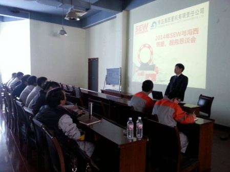 近日,根據(jù)合作計劃,SEW-傳動設(shè)備(天津)有限公司技術(shù)人員來海西重機就減速機的使用和安裝進(jìn)行交流,公司項目部、物資部、品質(zhì)部等部門相關(guān)人員參加了交流會。