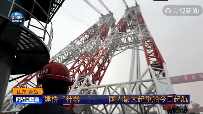 1月9日,由中鐵大橋局投資建造的“大橋海鷗”號起重船在青島海西重機(jī)碼頭完成交付,這是繼“德浮3600噸浮吊”之后,海西重機(jī)交付的又一臺起重設(shè)備。央視新聞進(jìn)行了全程跟蹤報道。