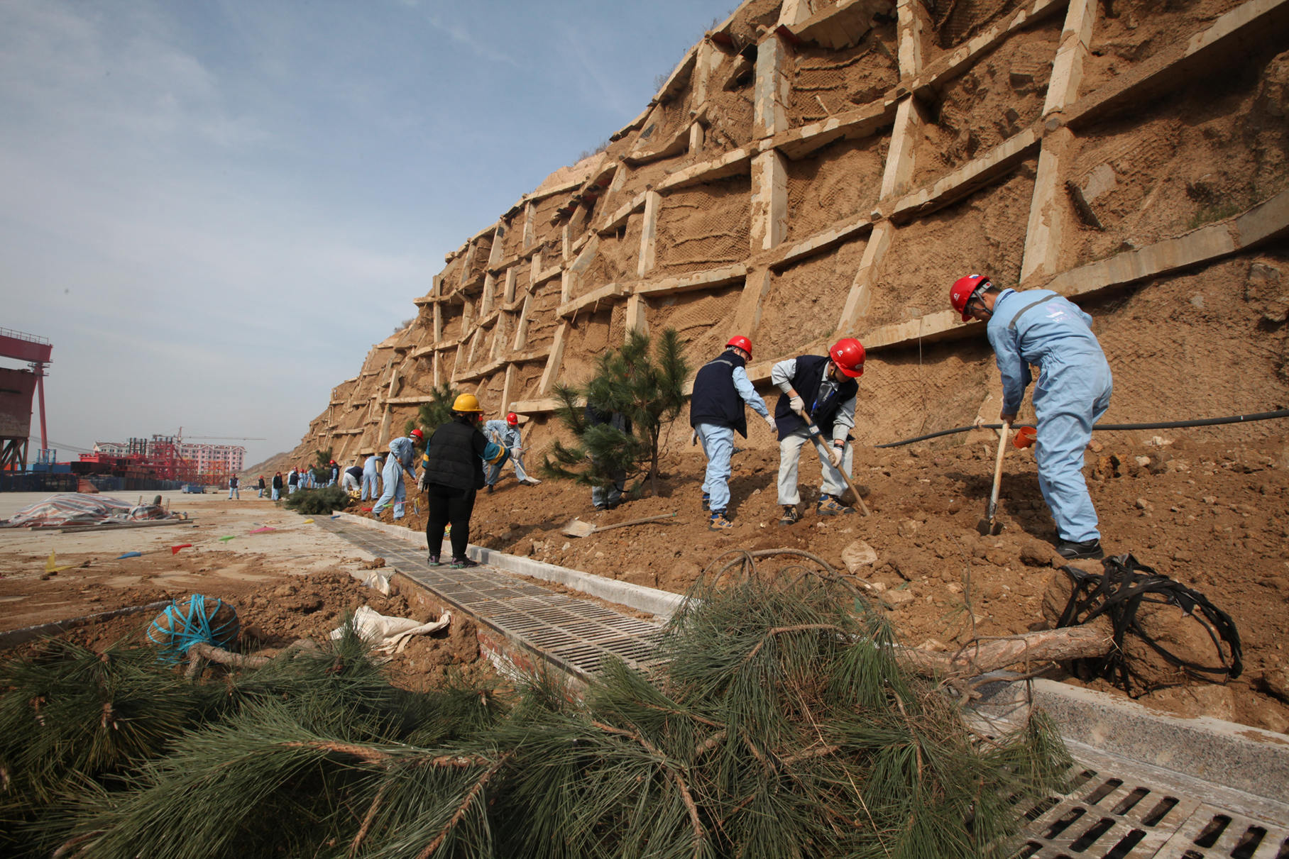 紙上得來(lái)終覺(jué)淺,絕知此事要躬行。揮鍬的汗水在背上流淌,植樹(shù)的快樂(lè)在心中徜徉。兩個(gè)小時(shí)后,原本光禿貧瘠的護(hù)坡區(qū),在大家的努力下煥然一新,放眼望去,一片綠色,讓人切身感受到了濃濃的春意和盎然的生機(jī)與希望。