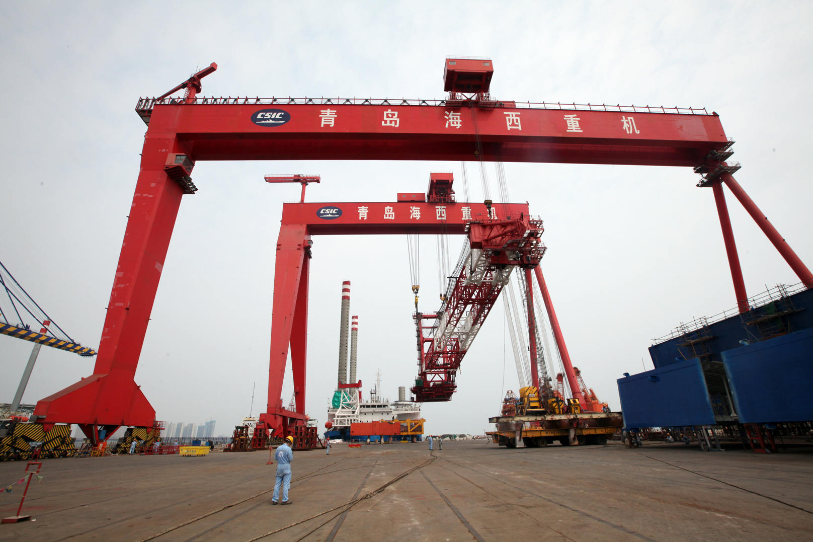 尚和海工1200T自航自升式海上風(fēng)電多功能安裝平臺是武漢總部與尚和(上海)海洋工程裝備有限公司簽訂的總包項(xiàng)目,海西重機(jī)負(fù)責(zé)承制尚和1200T繞樁式回轉(zhuǎn)重型起重機(jī),該起重機(jī)臂架長約103米,整機(jī)自重1352噸,最大起重量為1200噸,最大起升高度可達(dá)115米。