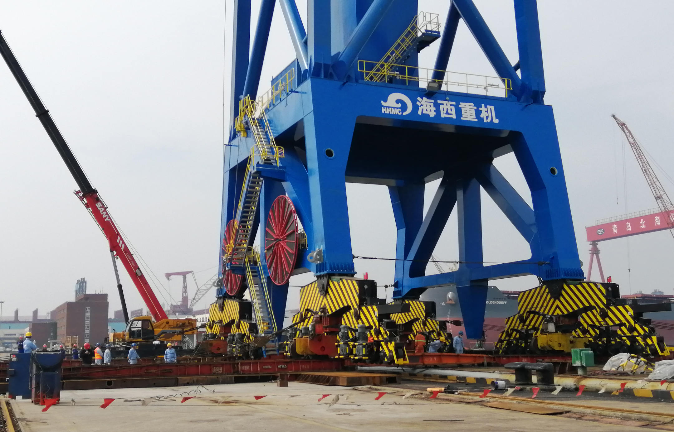G232項(xiàng)目是海西重機(jī)為青島北海船舶重工有限責(zé)任公司建造的1臺(tái)D型120t門座起重機(jī),10月7日,在業(yè)主碼頭順利完成了卸船作業(yè),國(guó)慶節(jié)尾聲獻(xiàn)上一份大禮。G232原計(jì)劃在9月25日完成滾裝裝船工作,但因?yàn)榇趩栴},后調(diào)整至十一假期。
