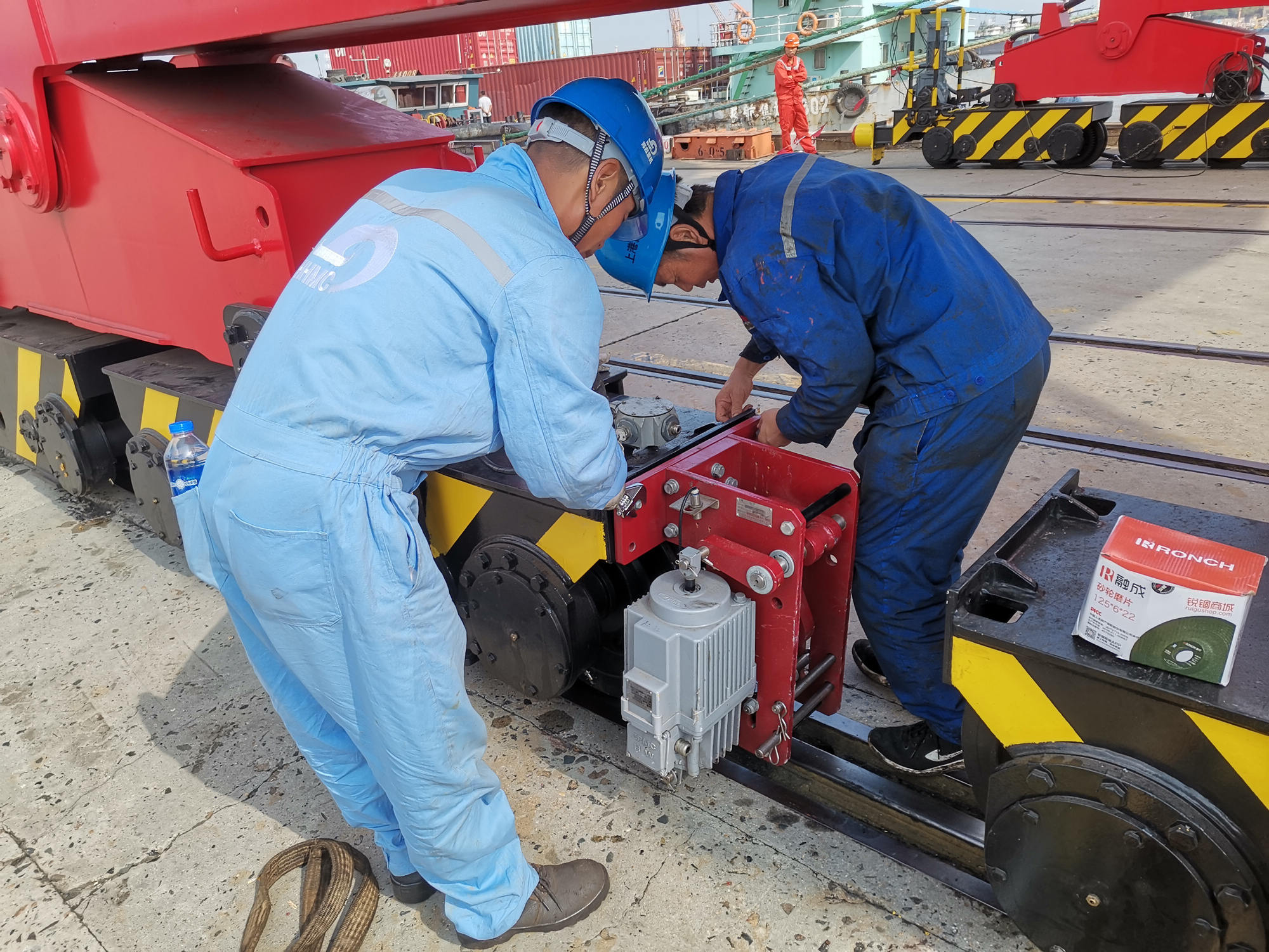 國(guó)慶假日恰逢米娜臺(tái)風(fēng)光顧,為了能按時(shí)順利交機(jī),調(diào)試人員、安裝人員提前策劃國(guó)慶期間工作安排,人機(jī)料法環(huán),既要保進(jìn)度、重質(zhì)量,又要考慮施工天氣和安全 ,經(jīng)過緊密組織策劃,防臺(tái)防汛結(jié)束后馬上開始追趕調(diào)試進(jìn)度,中午連班,晚上加點(diǎn),10月4日順利完成特檢,10月6日吊具功能調(diào)試順利完成并交付業(yè)主試運(yùn)行。