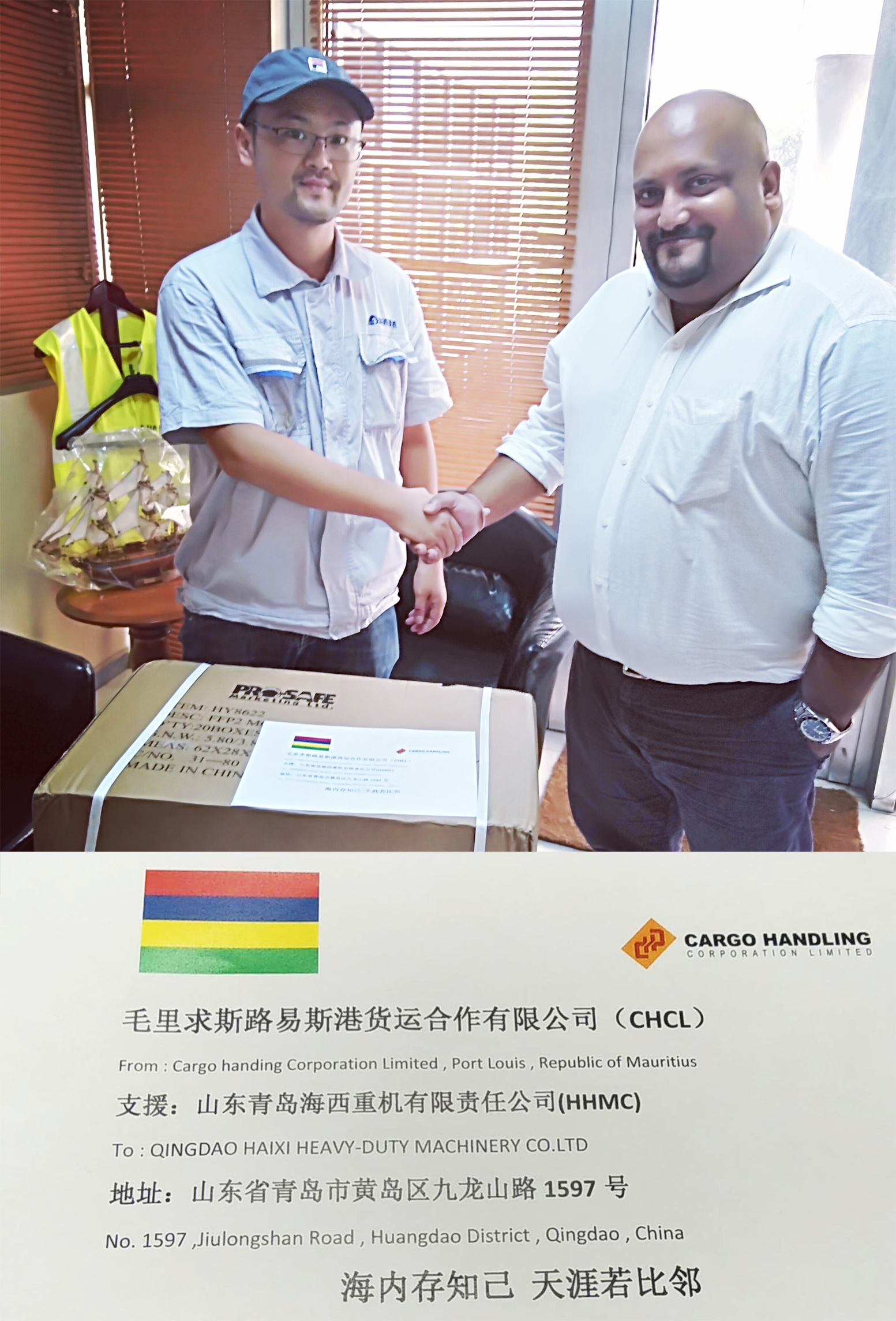 毛里求斯CHCL公司成立于1983年,旗下?lián)碛兴募已b卸公司,是毛里求斯路易港的唯一運(yùn)營商,是海西重機(jī)長期友好合作的業(yè)主。Bimal先生得知海西重機(jī)售后服務(wù)員工幫同事買口罩時(shí),了解到我國疫情情況和公司口罩吃緊現(xiàn)狀后,立即向CHCL總部反映,第一時(shí)間得到回復(fù)捐贈(zèng)口罩。Anada先生自發(fā)組織維修部全體員工,出錢出力募集口罩。