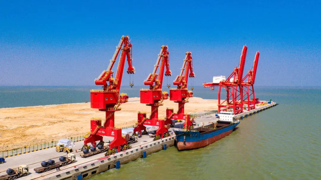 5月15日,武漢船機(jī)海西重機(jī)為日照港山鋼碼頭有限公司打造的3臺(tái)45t-35m門座起重機(jī)交付。