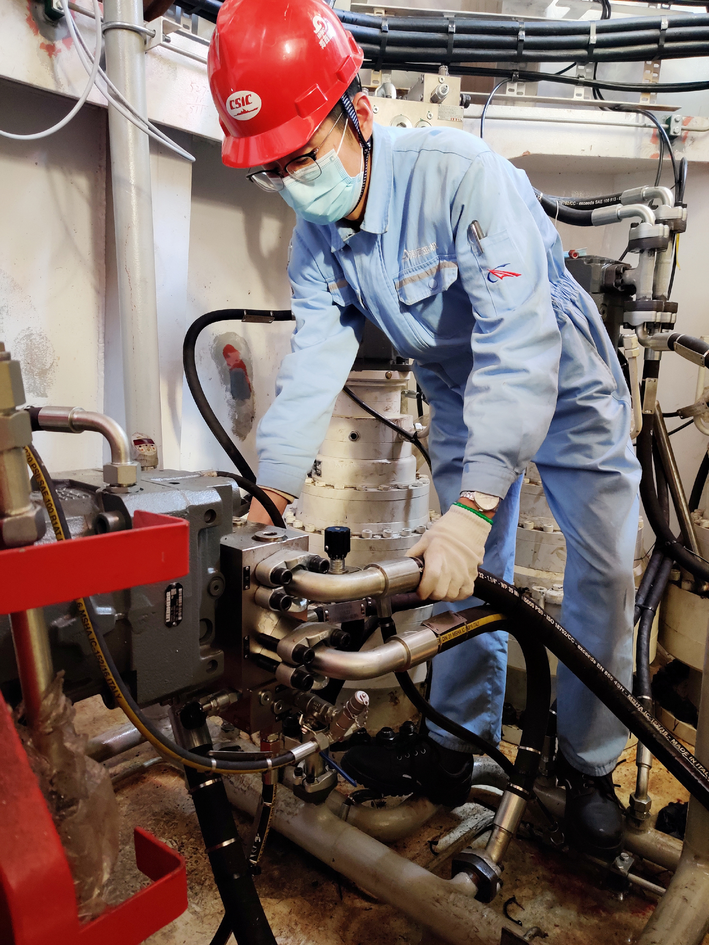 從管路預制,泵壓試驗,酸洗串油,到管路復裝,張偉康總是在馮鵬超的傳幫帶下,分工合作,恰似黃金拍檔。在海工設備后期液壓系統(tǒng)調試的半個月中,他們和總部工程師一起,每天主動加班調試到深夜。由于產生液壓系統(tǒng)故障的可能性因素較多,排查起來較為困難,面對調試中發(fā)生的諸多難題,他們迎難而上,敢于擔當,認真分析討論各種解決方案,并嚴格進行逐一排查,最終完美解決了故障。張偉康新人得力,敢于主動擔當,堅守液壓潤滑陣地,為保證整個項目按時交付爭分奪秒。