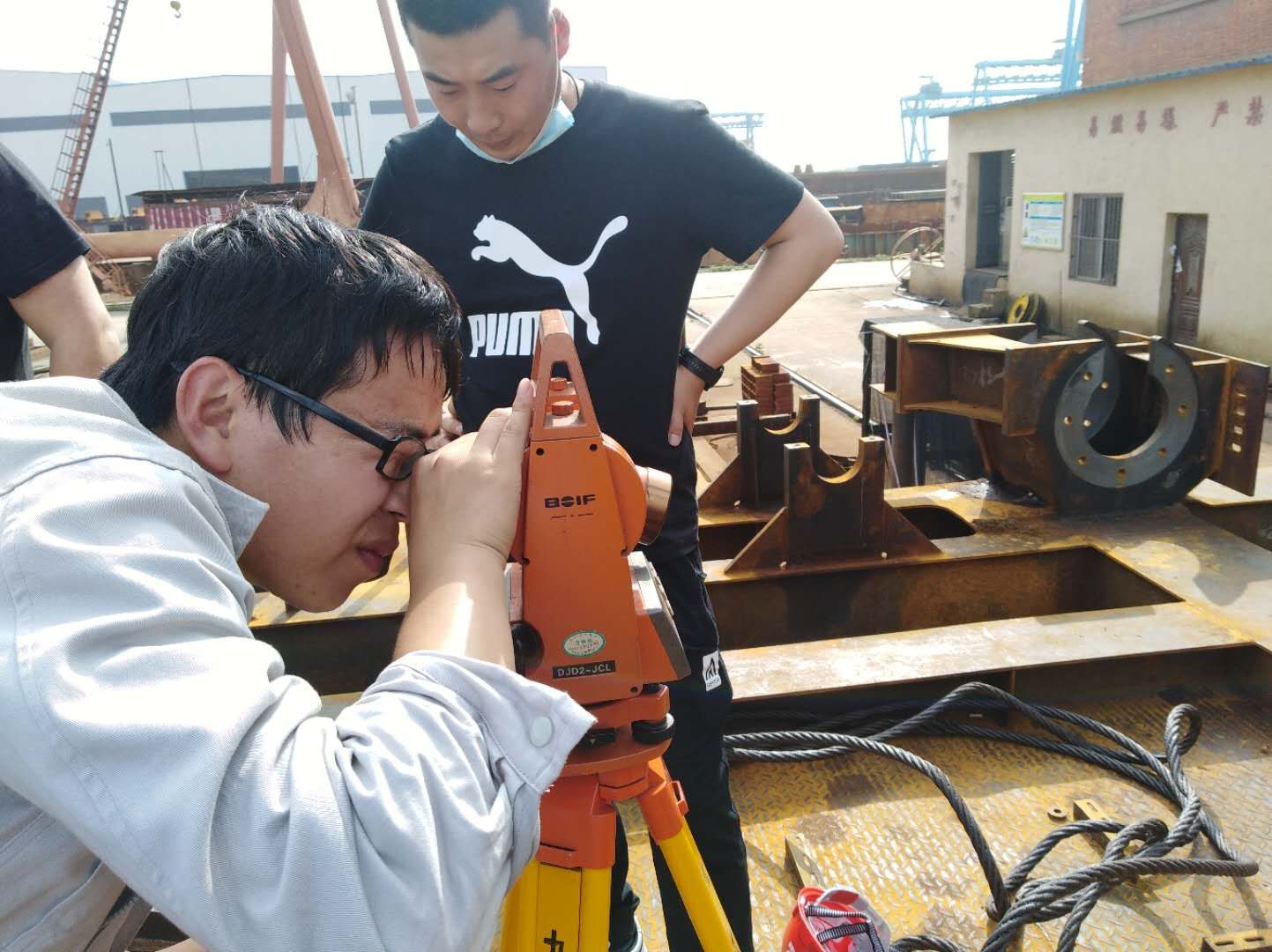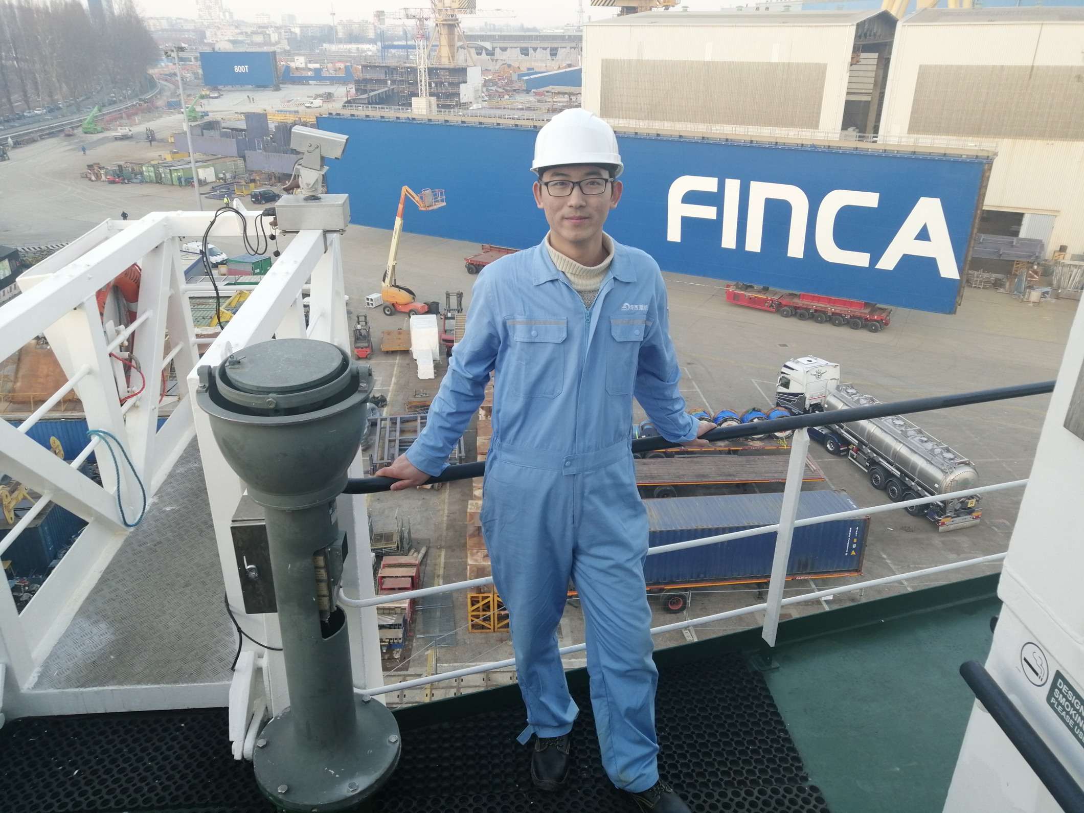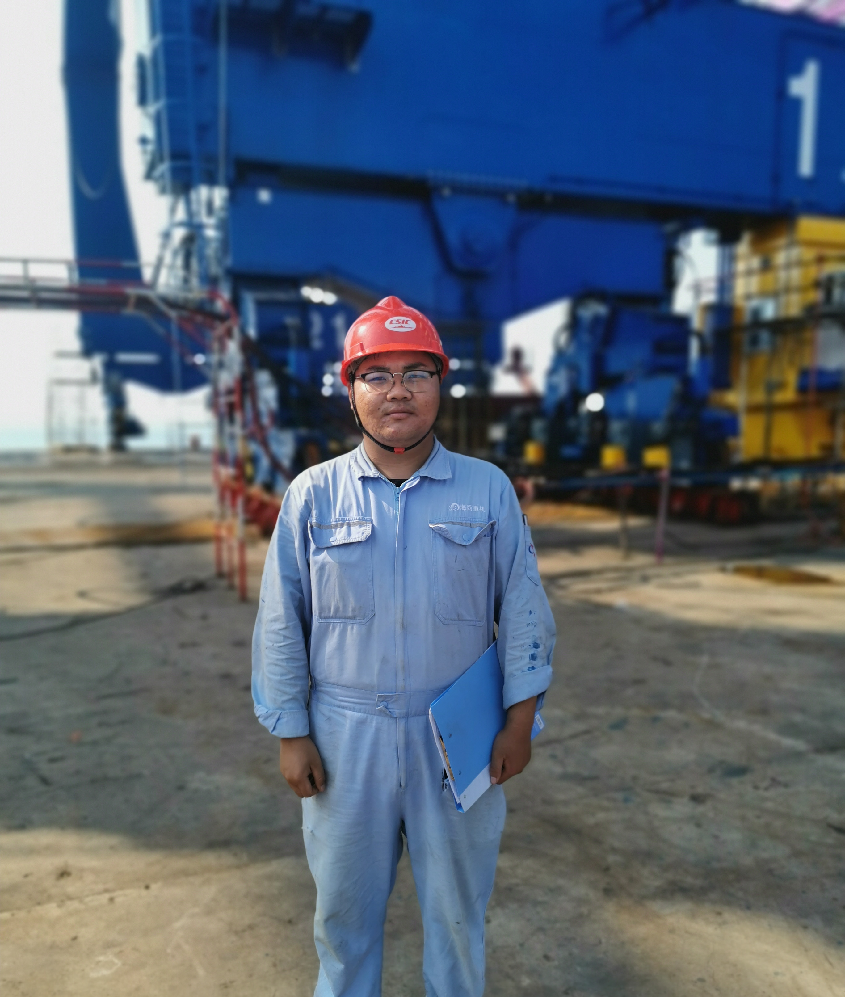 “我先后前往紅光碼頭總裝現(xiàn)場以及九橋鋼結構制作現(xiàn)場,幾乎每天都有雨,現(xiàn)場施工壓力大,經常要冒雨趕工,在雨中工作已經成為常態(tài),哪怕渾身濕透也要繼續(xù)。通過與施工隊溝通,在師傅牟壽堂的指導下,清點現(xiàn)場物資,不斷解決現(xiàn)場技術問題,加深了對整機結構和裝配的理解?,F(xiàn)場碼頭吊裝需要使用浮吊,浮吊方案的編制十分復雜,不僅僅要考慮吊高、幅度與載重,還要考慮水位、吊裝角度、臂架干涉等一系列的問題,為了把參數計算準確,經常加班加點,還好努力就有收獲,現(xiàn)在對吊裝作業(yè)的理解更深了?!眲㈤F旗在感嘆自己的成長,感恩于他的付出,畢竟無論是小青年還是老青年,這片藍天是靠大家共同撐起的。