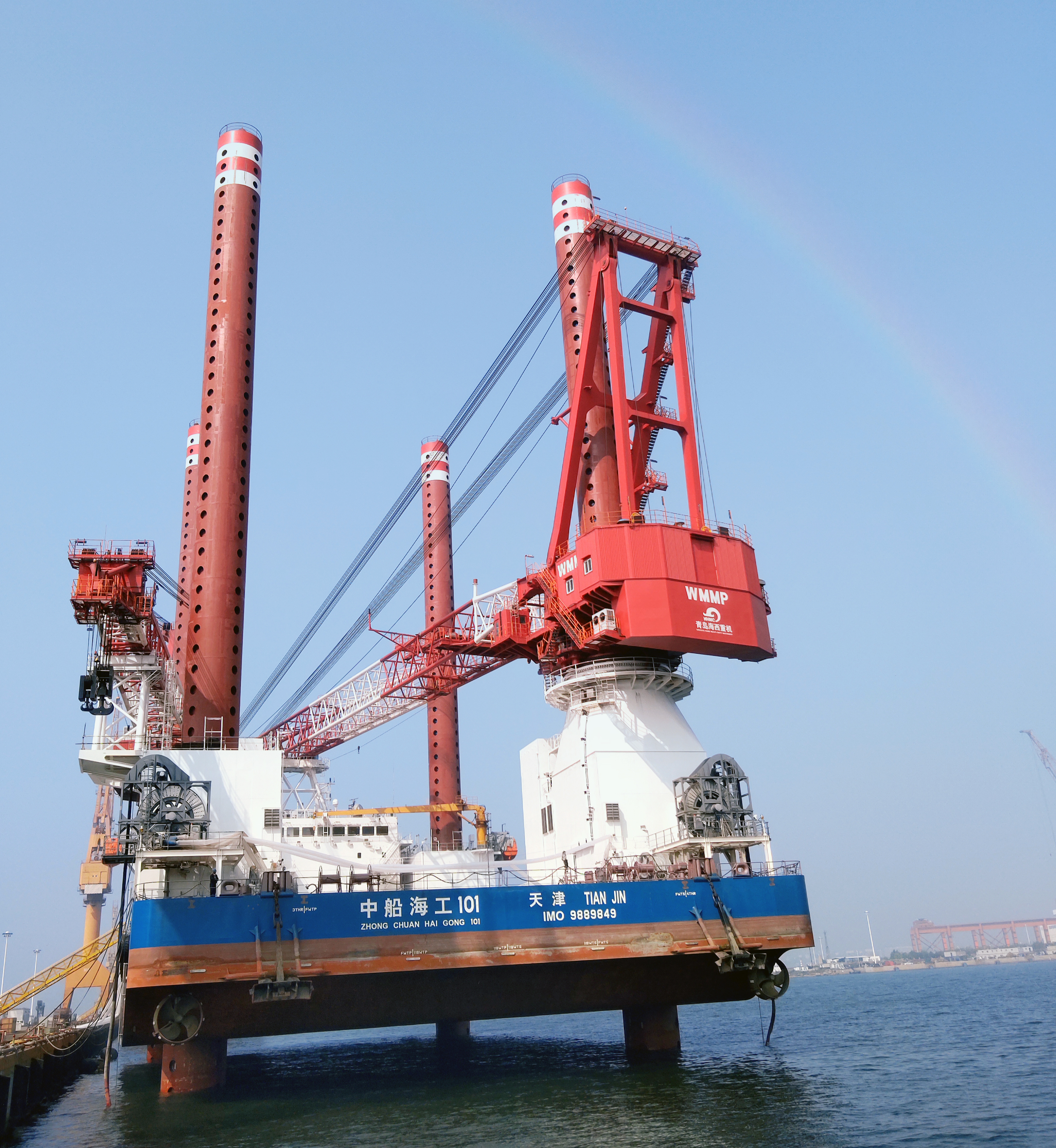 7月31日,大船集團(tuán)山船重工為中船集團(tuán)(天津)海上風(fēng)電公司建造的自升式海上風(fēng)電安裝平臺(tái)“中船海工101”順利交付。該平臺(tái)的關(guān)鍵設(shè)備350T和1000T繞樁吊(以下簡(jiǎn)稱H15項(xiàng)目)由海西重機(jī)負(fù)責(zé)制造、安裝、調(diào)試。