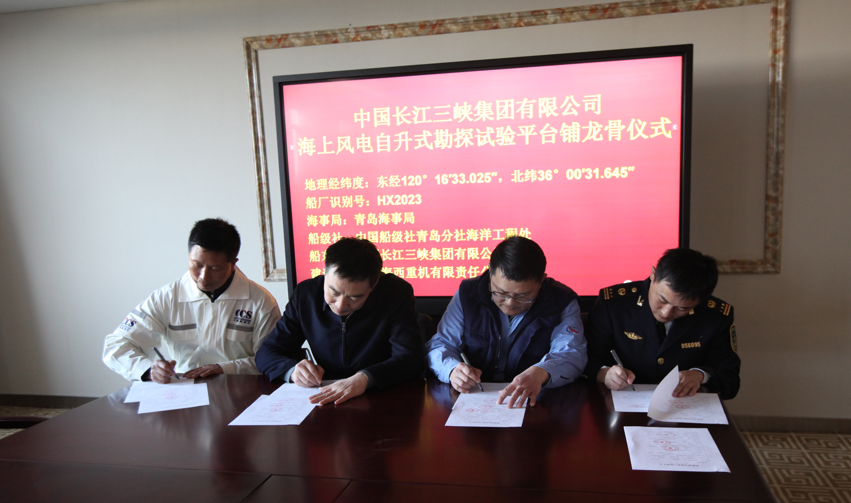 12月22日上午,在青島海事局、中國船級社青島分社、中國長江三峽集團(tuán)有限公司、中國船舶集團(tuán)旗下武漢船機(jī)海西重機(jī)各方代表共同見證下,“中國三峽101”海上風(fēng)電自升式勘探試驗(yàn)平臺順利完成鋪龍骨儀式,標(biāo)志著該項(xiàng)目正式進(jìn)入平臺搭載建造階段。