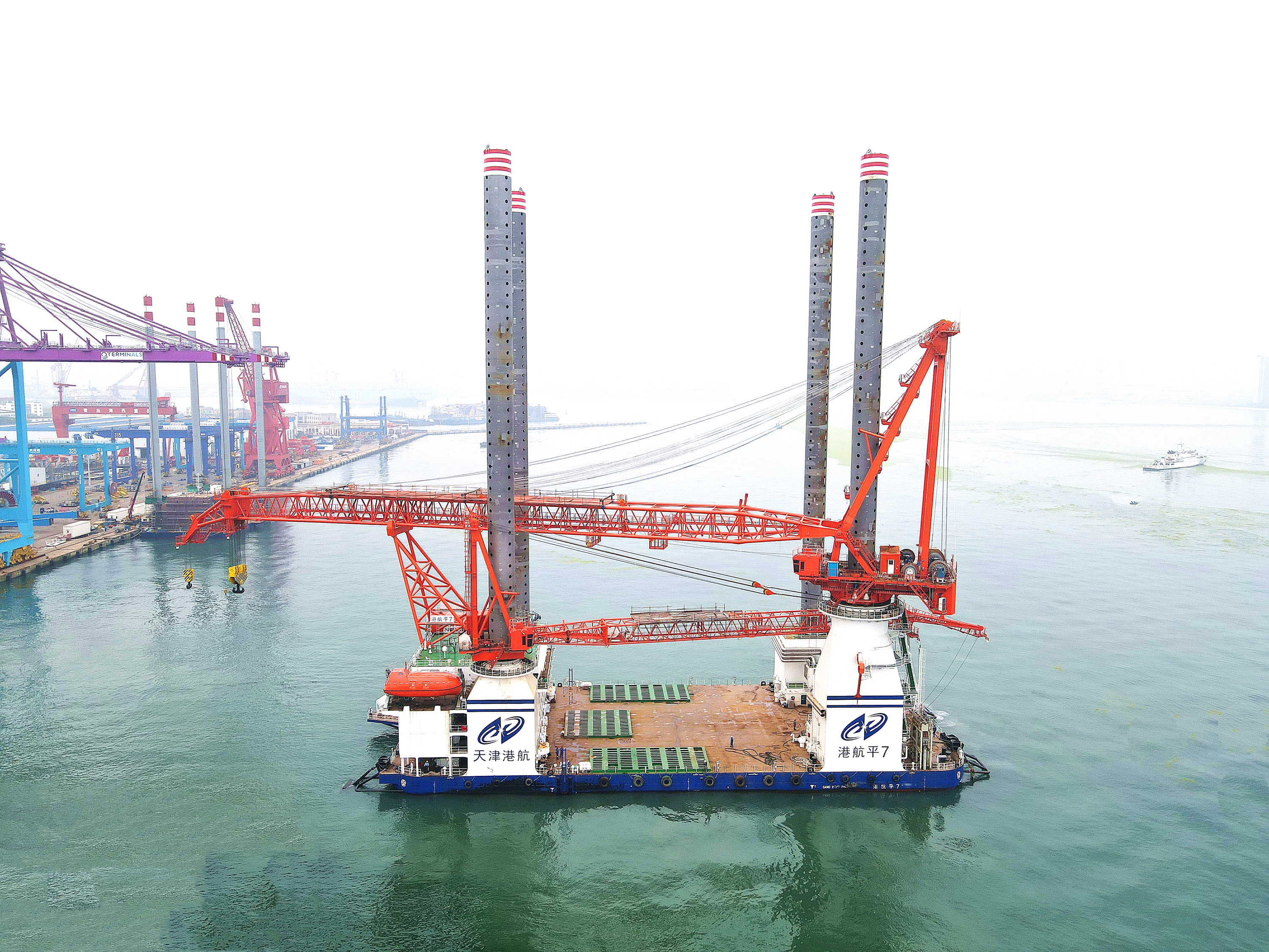 “港航平7”正式服役后,可與1200T全回轉自升式海上平臺——“港航平9”、5000噸風電工藝駁船——“港航駁5”、世界最大打擊能量MHU3500S液壓沖擊錘等船機設備構建更加完備的風電施工專業(yè)設備體系,將有效緩解海上風電施工設備緊張壓力,提升海上風電規(guī)?;鳂I(yè)能力,對貫徹落實黨中央、國務院關于碳達峰、碳中和重大決策部署,確?!笆奈濉遍_好局、起好步,促進國家綠色能源的發(fā)展貢獻力量。