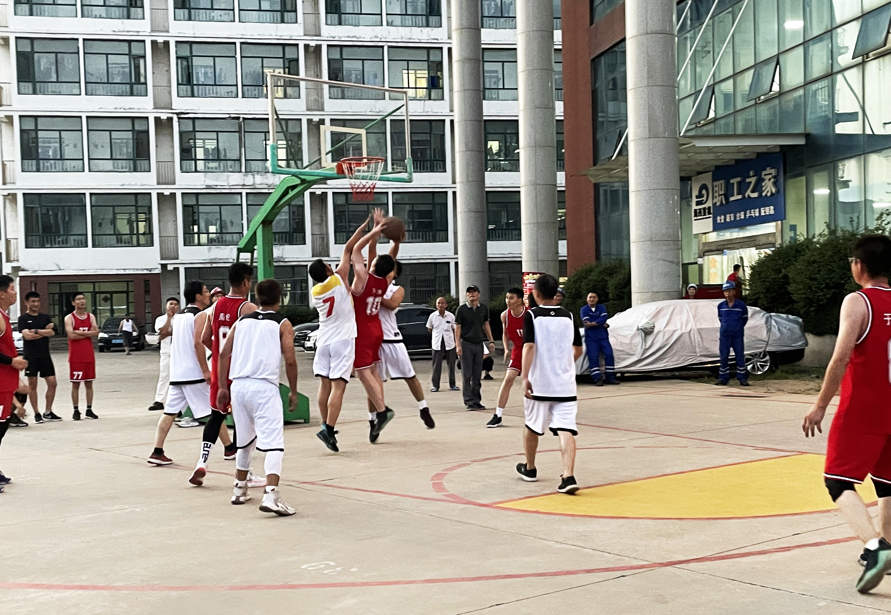 大家看球時(shí)笑說,“于永春長胖了,跑動(dòng)速度慢了,說明公司的伙食不錯(cuò)啊,看來還得常打球,堅(jiān)持鍛煉啊。”“李旭東單場贏得22分,妥妥的得分王,他的進(jìn)攻真帥!”