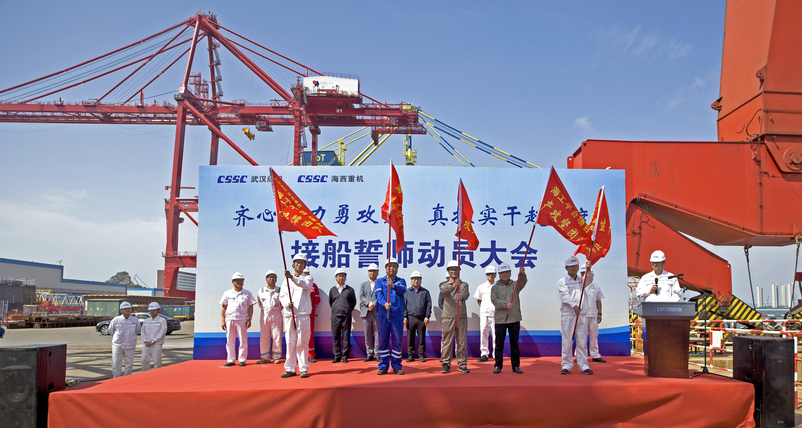 為了明確目標(biāo)、凝聚共識(shí)、齊心協(xié)力、克難攻堅(jiān),亮明迎難而上的堅(jiān)定信心和堅(jiān)強(qiáng)決心,動(dòng)員全員上下持續(xù)營(yíng)造濃厚干事氛圍,掀起“齊心協(xié)力勇攻堅(jiān),真抓實(shí)干趕進(jìn)度”的高潮,全力以赴打好海工項(xiàng)目集中攻堅(jiān)戰(zhàn),5月25日上午,中國(guó)船舶集團(tuán)旗下武漢船機(jī)海西重機(jī)公司在生產(chǎn)現(xiàn)場(chǎng)組織開展接船誓師動(dòng)員大會(huì)。華夏金融租賃有限公司、北京神大集團(tuán)有限公司、飛勵(lì)特船舶管理有限公司、大津重工泰州分公司、江陰雙馬重工裝備有限公司、武漢船機(jī)海西重機(jī)等相關(guān)方參加本次動(dòng)員大會(huì)。