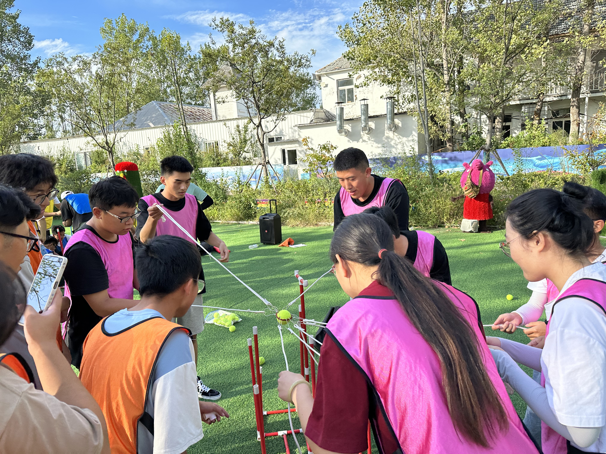 秋風(fēng)送爽,秋意宜人。早上九點鐘,大家到達(dá)了嶗山王哥莊拓展基地,活動拉開帷幕。新員工們分成了“美團隊”、“餓了么隊”、“汪汪隊”、“芭比猛男隊”四支隊伍。選隊長、起隊名、喊隊訓(xùn),大家相互了解加深,團隊氛圍逐漸熱烈,為接下來的培訓(xùn)做好準(zhǔn)備。各種室外室內(nèi)拓展項目——“挑戰(zhàn)團隊極限”、“有軌電車”、“急速60秒”、“旱地冰壺挑戰(zhàn)賽”、“團隊金字塔”,用豐富多彩的趣味游戲寓教于樂,幫助學(xué)員體會團隊合作的重要性。