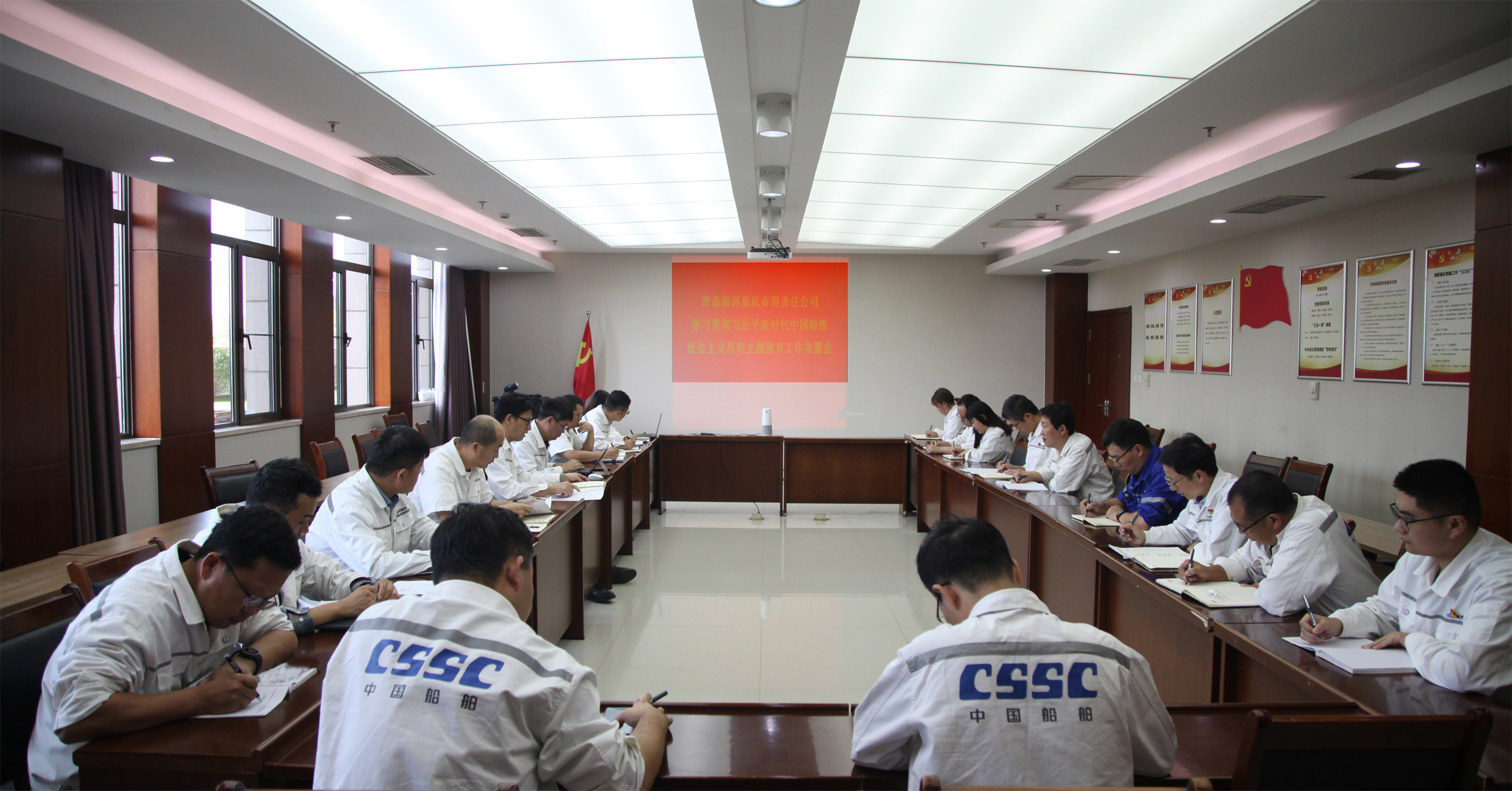 10月11日,中國船舶集團旗下武漢船機海西重機公司黨委召開學習貫徹習近平新時代中國特色社會主義思想主題教育工作布置會。公司黨委書記、董事長李儒新作工作安排布置,公司黨委副書記、紀委書記朱聲凱對主題教育實施方案作解讀,公司黨委副書記、總經(jīng)理蔣新標,黨委委員、副總經(jīng)理代振華、謝宛朋出席會議。