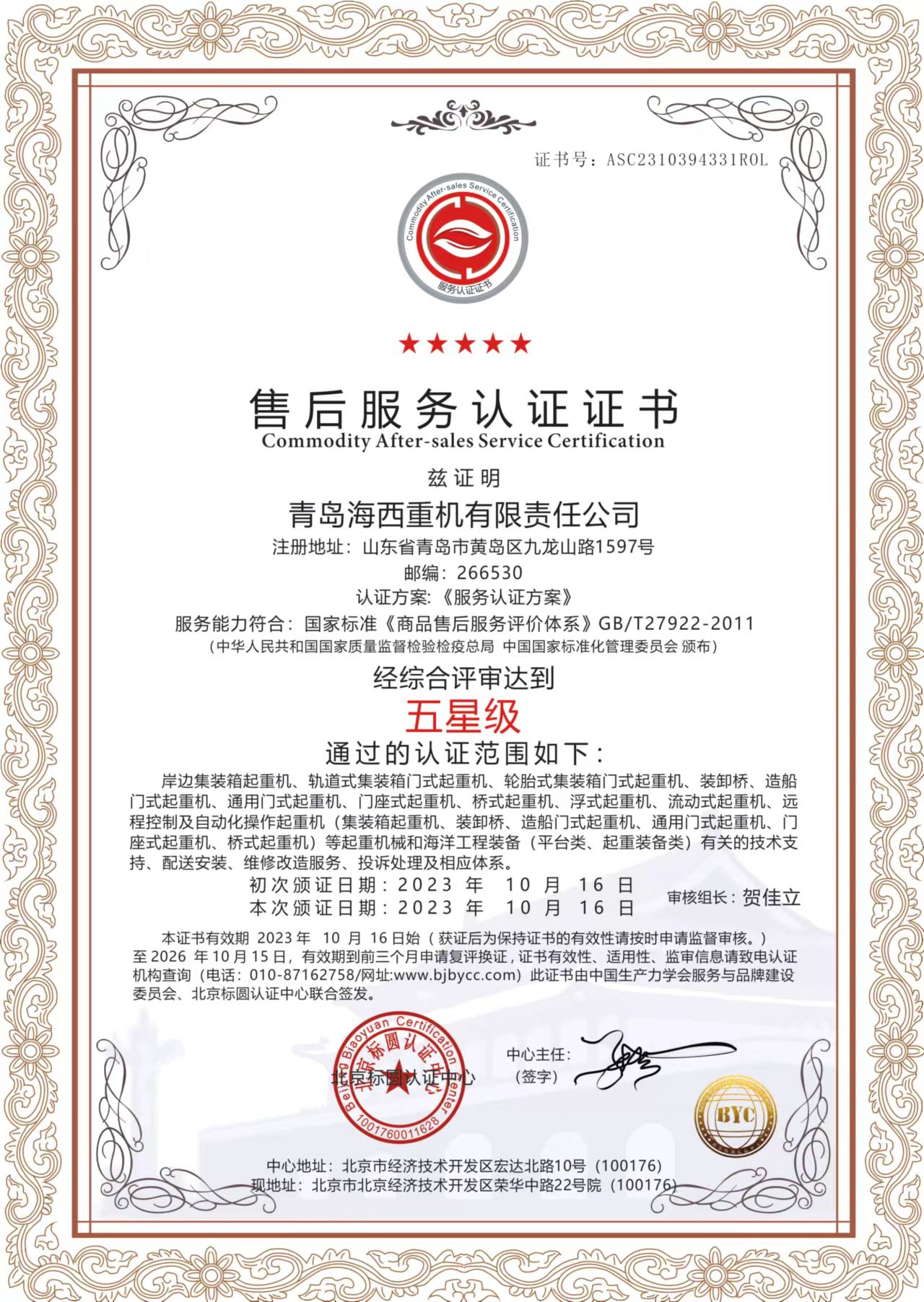 通過(guò)售后服務(wù)體系認(rèn)證,是對(duì)海西重機(jī)品質(zhì)追求和服務(wù)能力的有力驗(yàn)證。海西重機(jī)將以此為契機(jī),繼續(xù)提升服務(wù)質(zhì)量,為每一位客戶提供更優(yōu)質(zhì)、更高效、更全面的服務(wù),為客戶創(chuàng)造更大的價(jià)值。
