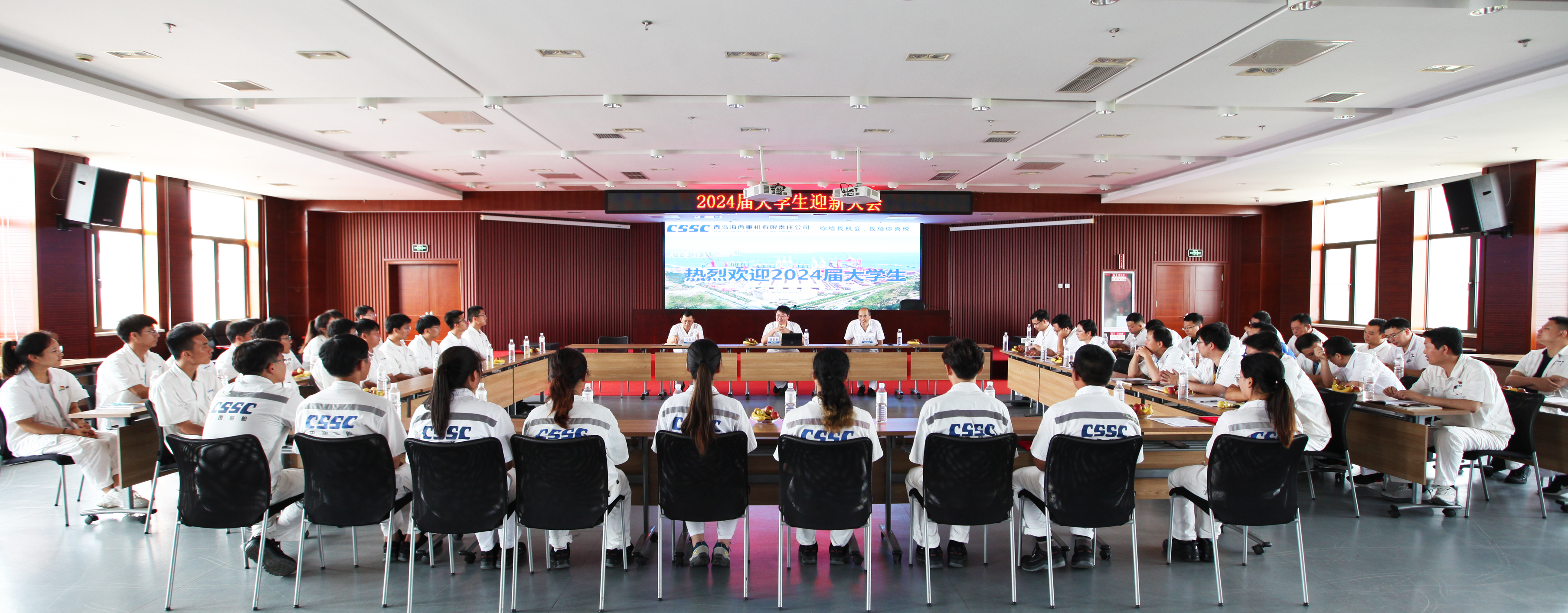 7月26日,中國船舶集團(tuán)旗下武漢船機(jī)海西重機(jī)公司2024屆新入職大學(xué)生迎新大會(huì)在901會(huì)議室舉行,公司領(lǐng)導(dǎo)、各部門負(fù)責(zé)人及新入職的25名大學(xué)生參加了大會(huì)。