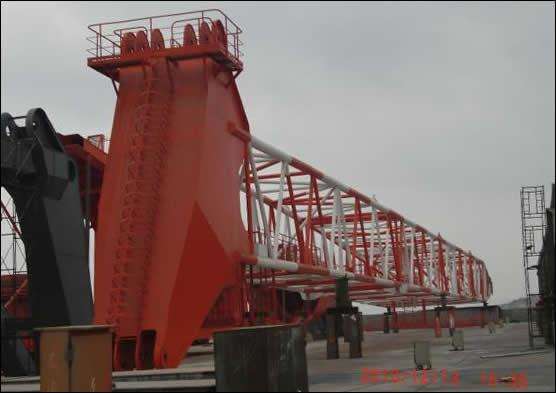 科研43A是我公司為江蘇南通韓通船舶重工有限公司生產(chǎn)的250T-30m風(fēng)車安裝船用回轉(zhuǎn)起重機(jī),整機(jī)重約為650T。這是我公司第一次生產(chǎn)海工產(chǎn)品,設(shè)計難度大,技術(shù)要求高,施工過程中出現(xiàn)問題多,而且工期要求緊。從一開始制作公司領(lǐng)導(dǎo)就極為重視,專門成立了以副總經(jīng)理為組長的生產(chǎn)小組,對生產(chǎn)中出現(xiàn)的問題盡量簡化程序,以最快的速度予以解決。目前,我公司負(fù)責(zé)生產(chǎn)的科研43A各部套結(jié)構(gòu)件已順利制作完成,通過業(yè)主驗(yàn)收,已達(dá)到發(fā)運(yùn)條件。