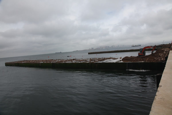 突堤碼頭作為公司產(chǎn)品多元化產(chǎn)品不可或缺的載體,它在公司發(fā)展上有著重大戰(zhàn)略意義,是公司進軍海洋平臺的堅實保證。自2012年3月16日動工開始一直倍受公司領(lǐng)導的關(guān)注,經(jīng)過四個多月的不懈努力:基礎(chǔ)開挖、拋石并夯實、人工水下整平、沉箱安置、沉箱回填,如今十個沉箱全部安置完成并開始沉箱回填,突堤碼頭已“浮出”水面,預示著突堤碼頭工程進度已過半,也確保整個工程保質(zhì)、保量按期完成。