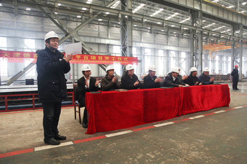 在開(kāi)工點(diǎn)火儀式上,船東德賽公司和美國(guó)ABS船級(jí)社都充分肯定了公司在開(kāi)工前的準(zhǔn)備工作,對(duì)公司的施工組織設(shè)計(jì)、項(xiàng)目人員配備、焊接工藝評(píng)定等等工作都非常滿意。公司副總孫國(guó)慶在點(diǎn)火儀式上承諾:在船東代表的指導(dǎo)下,在美國(guó)ABS船級(jí)社的監(jiān)造下,公司一定秉承“你(德賽公司)給我機(jī)會(huì),我給你喜悅”,建造一個(gè)一流的海工平臺(tái)交付船東,讓大家都喜悅!