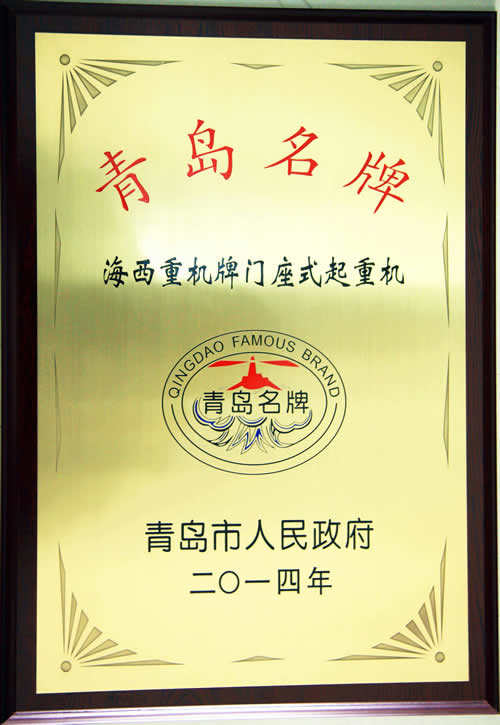 近日,海西重機(jī)門座式起重機(jī)被青島市人民政府授予“青島名牌”榮譽(yù)稱號(hào),并頒發(fā)證書。